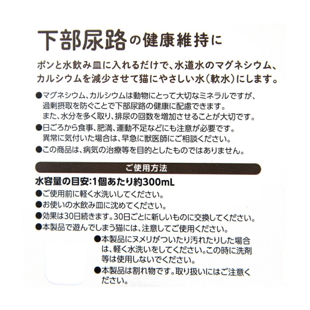 ● 放入水碗,可以抑制細菌生長,保持水質乾淨柔軟。